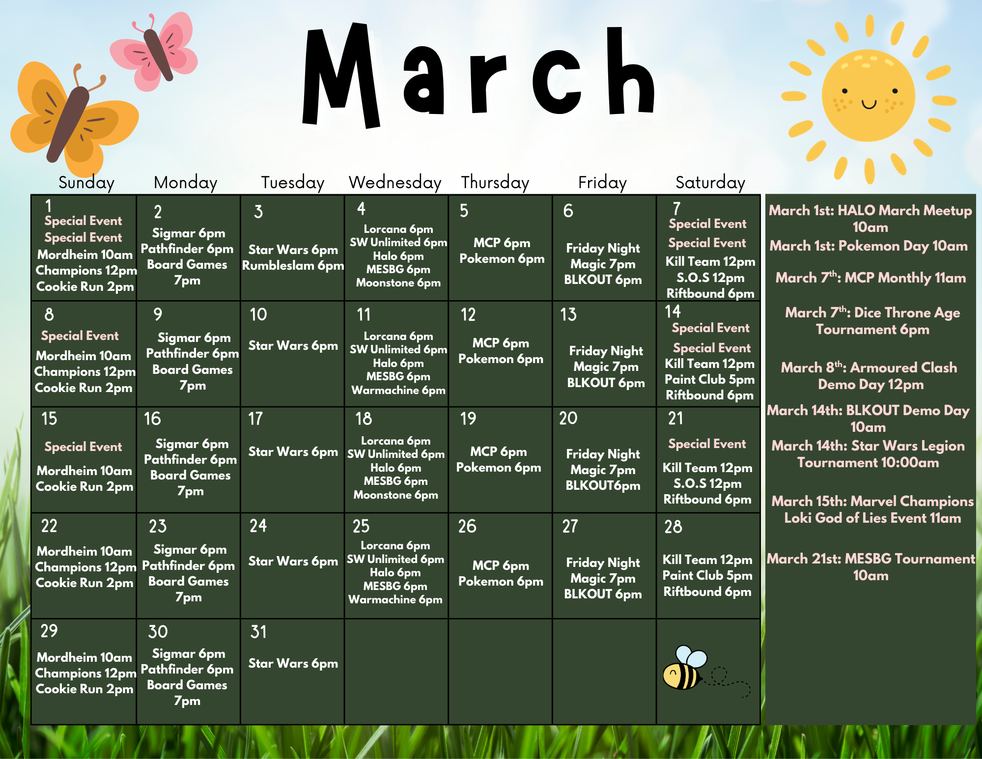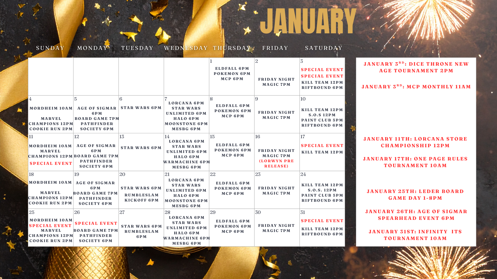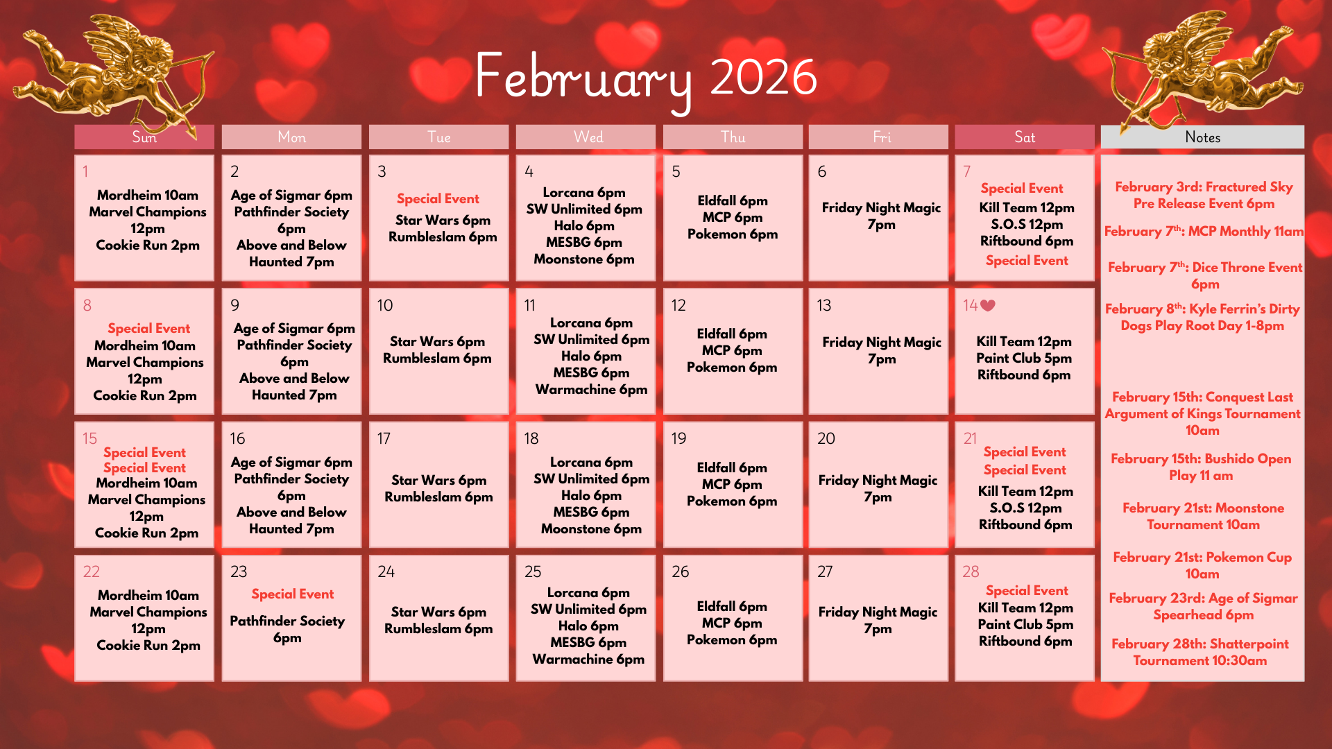 Check our community calendar for game nights and special events!
